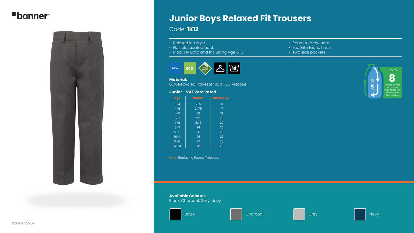 Banner Junior Boys Relaxed Fit Trouser 1K12