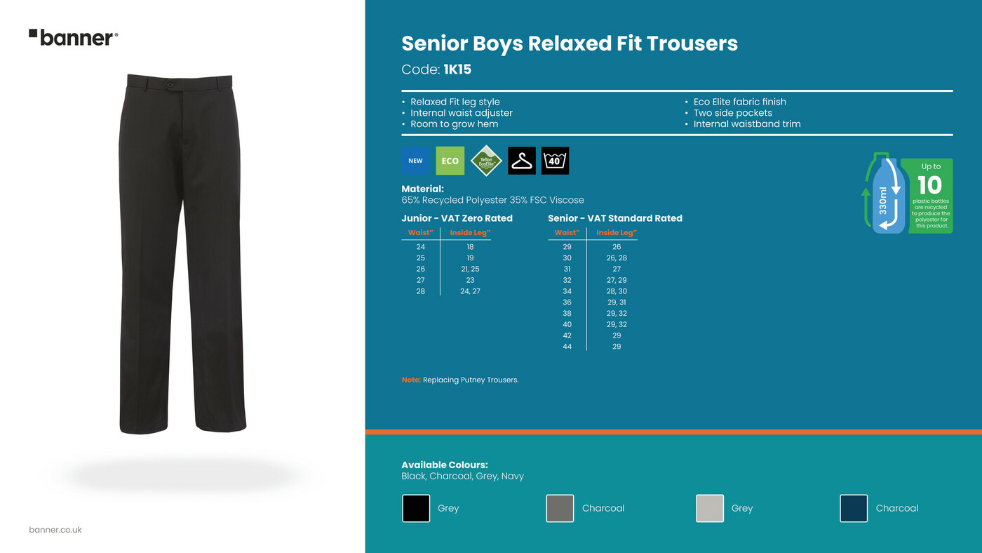 Banner Senior Boys Regular Fit Trousers(JUNIOR) 1K15