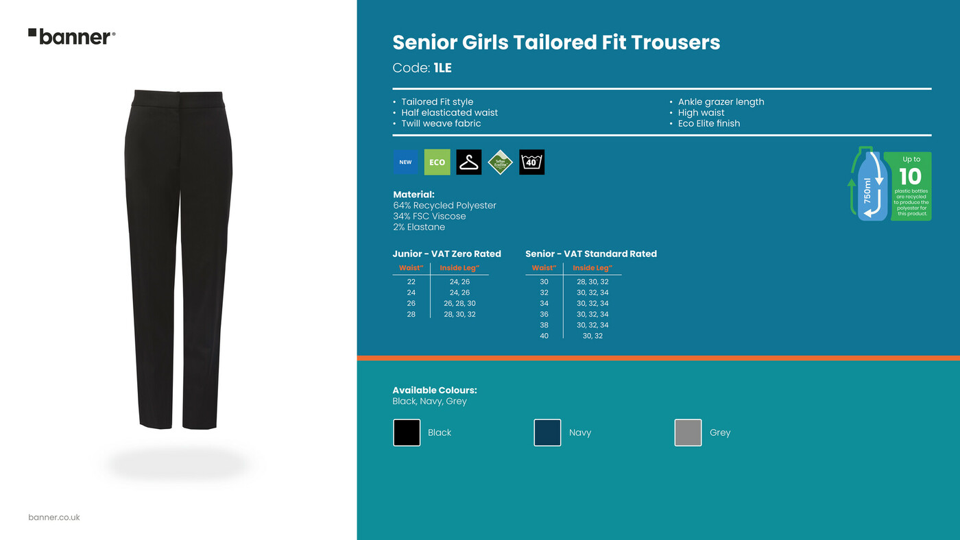 Banner Senior Girls Tailored Fit Trousers(JUNIOR) 1LE